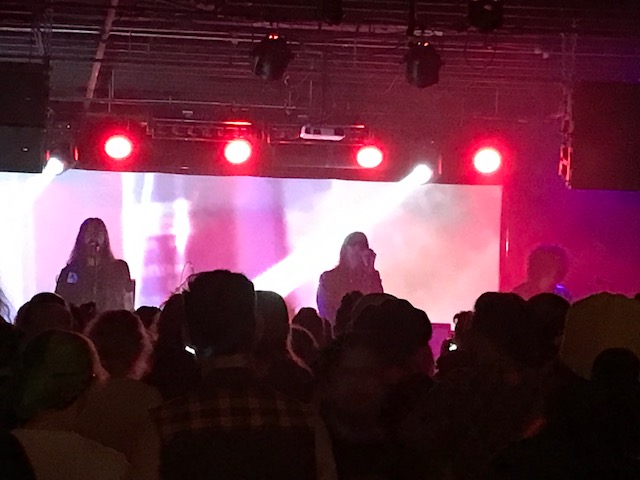 Of course, I've known Jake from the Lords of Altamont for decades and while I only got to exchange a few pleasantries with him this night while bands were playing, it was great to see the Lords play again. They performed with movies projected behind them and basically no other lights so photos basically just show silhouettes but the guys - bass, drums, guitar and Jake on vocals and keys - move'n'perform'n'pose with the best of them! They have a heavy, almost hard rock, garage sound, although the keys bring it all back to the 60's garage influences that they are based in. I need to delve into their catalog more as I thought that they were stronger than ever this time out - and that was without the fire and hot go-go dancers that they have had in the past. Also, it was incredibly nice of Jake to give a shout-out to me at the end of their set! Certainly unexpected!